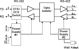 total isolation between RS-232 based equipment and RS-422 equipment. The Model