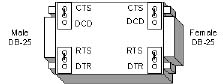 and connects to a DTE device, such as a terminal or PC. The female DB-25